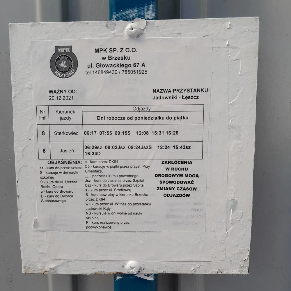 Przystanek Jadowniki - Łęszcz (do Jasień)