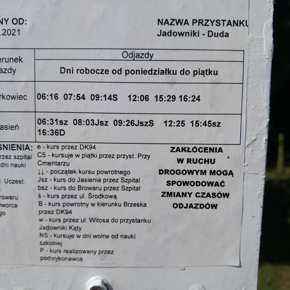 Brzesko DA- 06:31 06:33DH(MJ) 07:28D(MJ) 08:03 08:34D(MJ) 09:26S 09:38D(MJ) 11:28D(MJ) 12:18D(MJ) 12:25 13:43D(MJ) 14:43D(MJ) 15:45 15:48D(MJ) 16:36