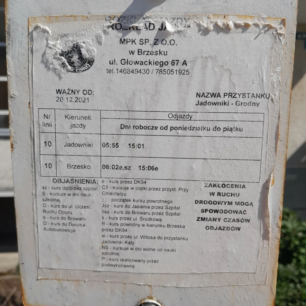 Przystanek Jadowniki - Grodny (do Brzesko)