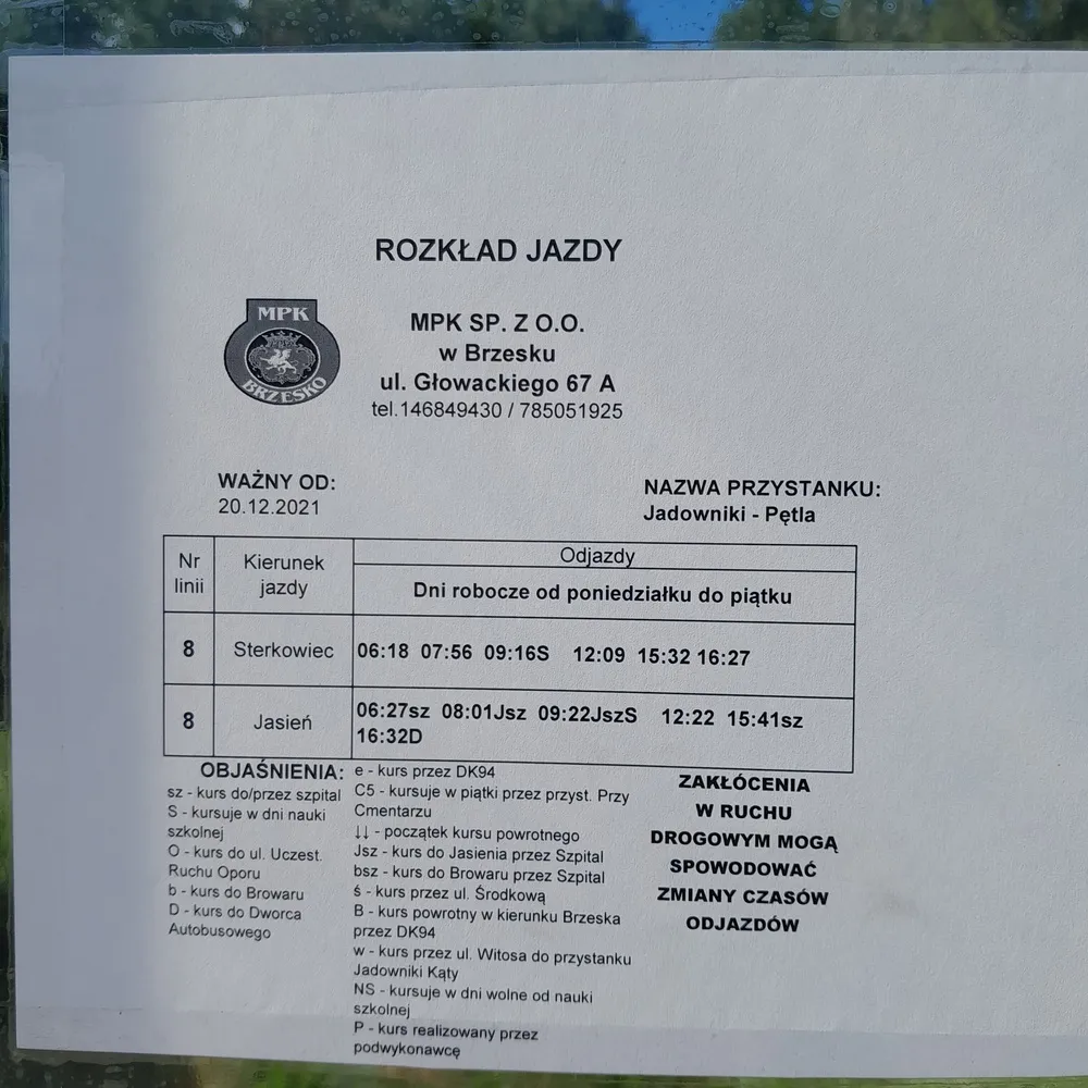Brzesko DA- 06:27 06:31DH(MJ) 07:26D(MJ) 08:01 08:32D(MJ) 09:22S 09:36D(MJ) 11:26D(MJ) 12:16D(MJ) 12:22 13:41D(MJ) 14:41D(MJ)15:41 15:46D(MJ) 16:32