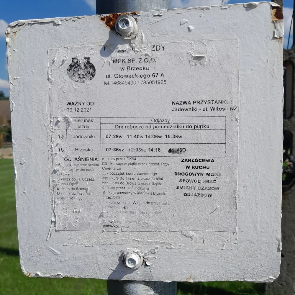 Przystanek Jadowniki - ul. Witosa NŻ (do Brzesko)