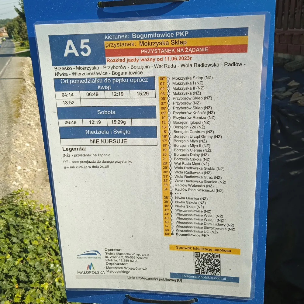 Rozkład jazdy w soboty