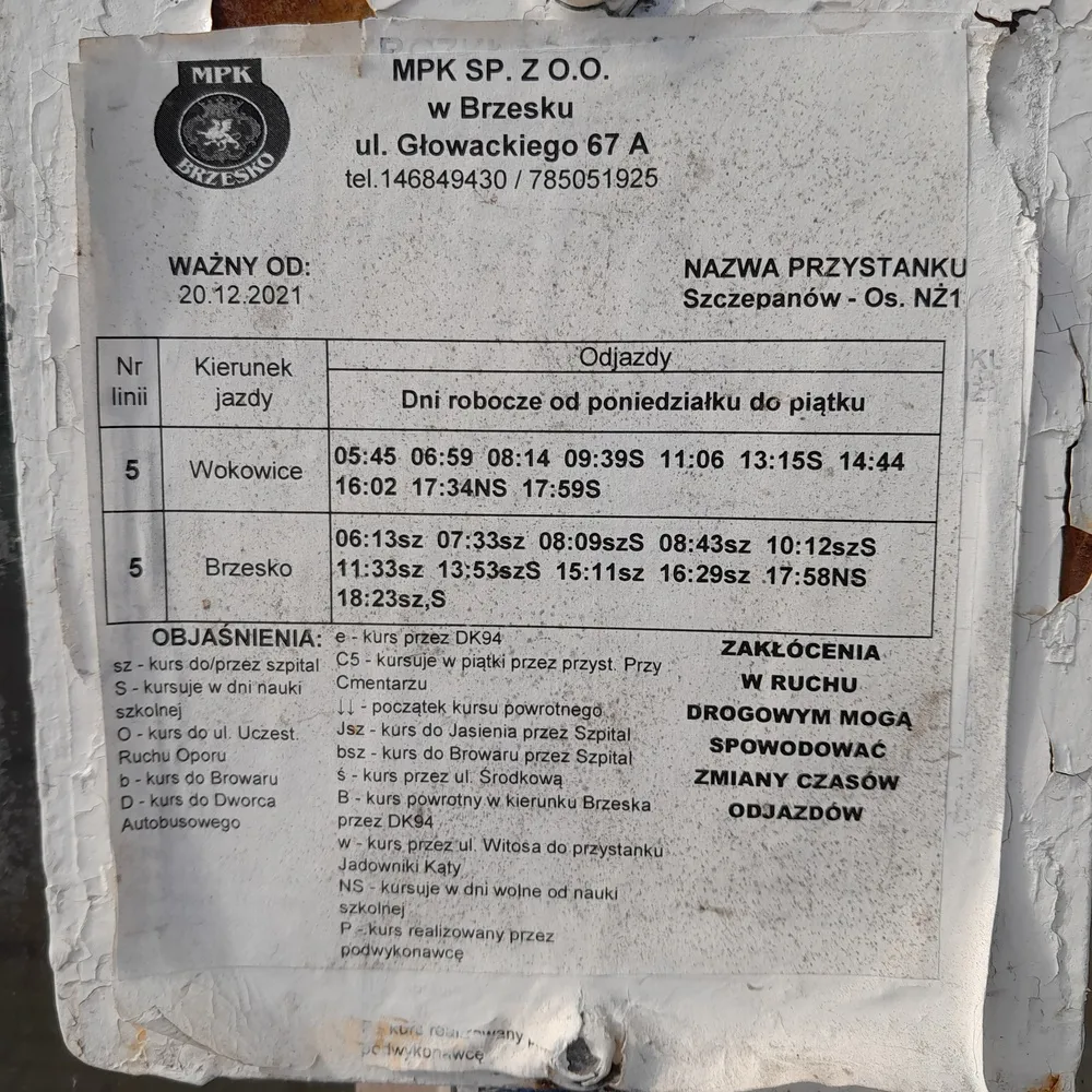 Brzesko PKP-            06:13 06:37DH(MJ) 07:33 08:09S 08:13DH(MJ) 08:43 09:45DH(MJ) 10:12S 11:33 11:50DH(MJ) 13:40DH(MJ)13:53S 15:11 15:35DH(MJ) 16:29 16:47DH(MJ)17:58NS 18:22DH(MJ) 18:23S